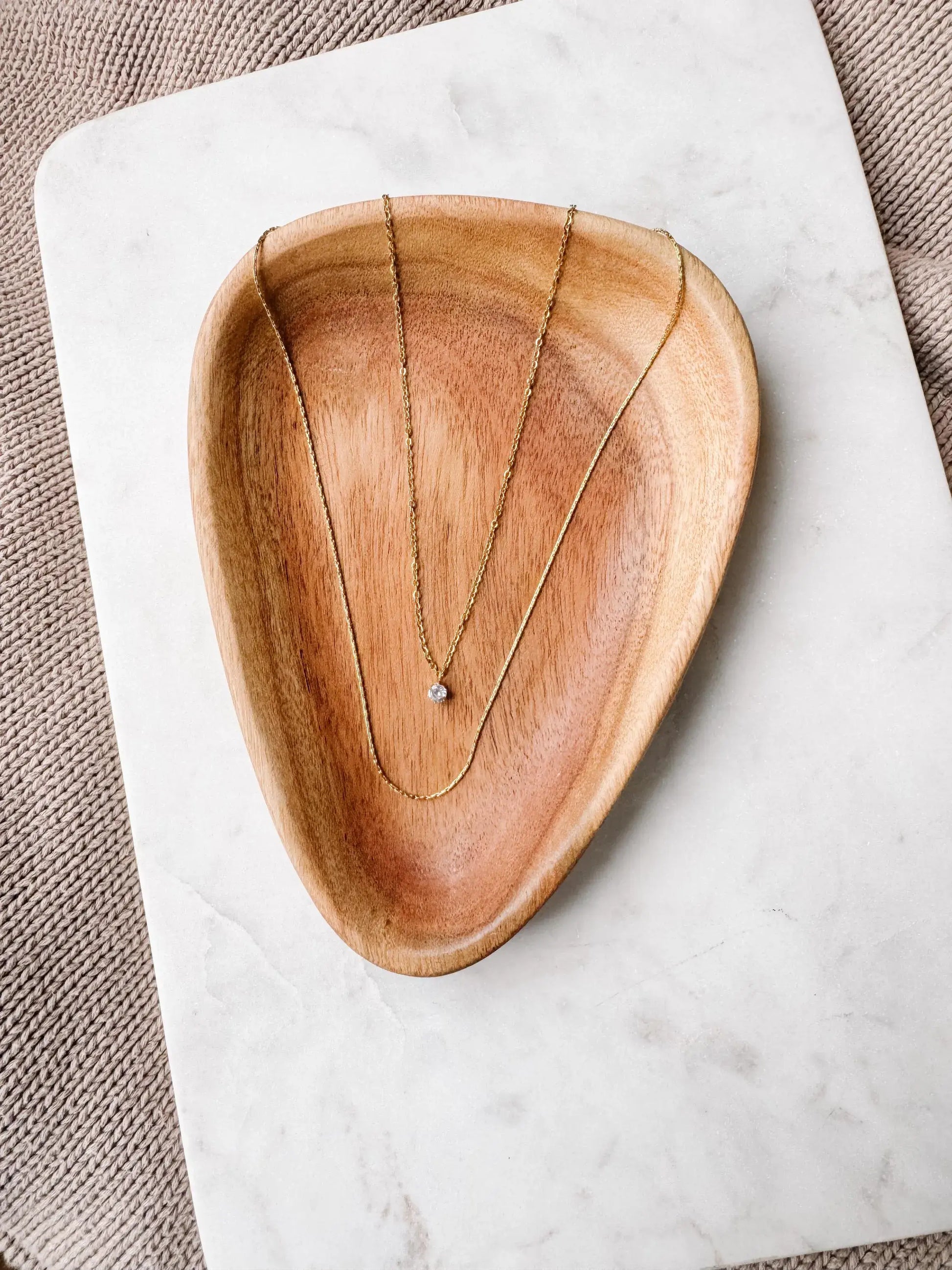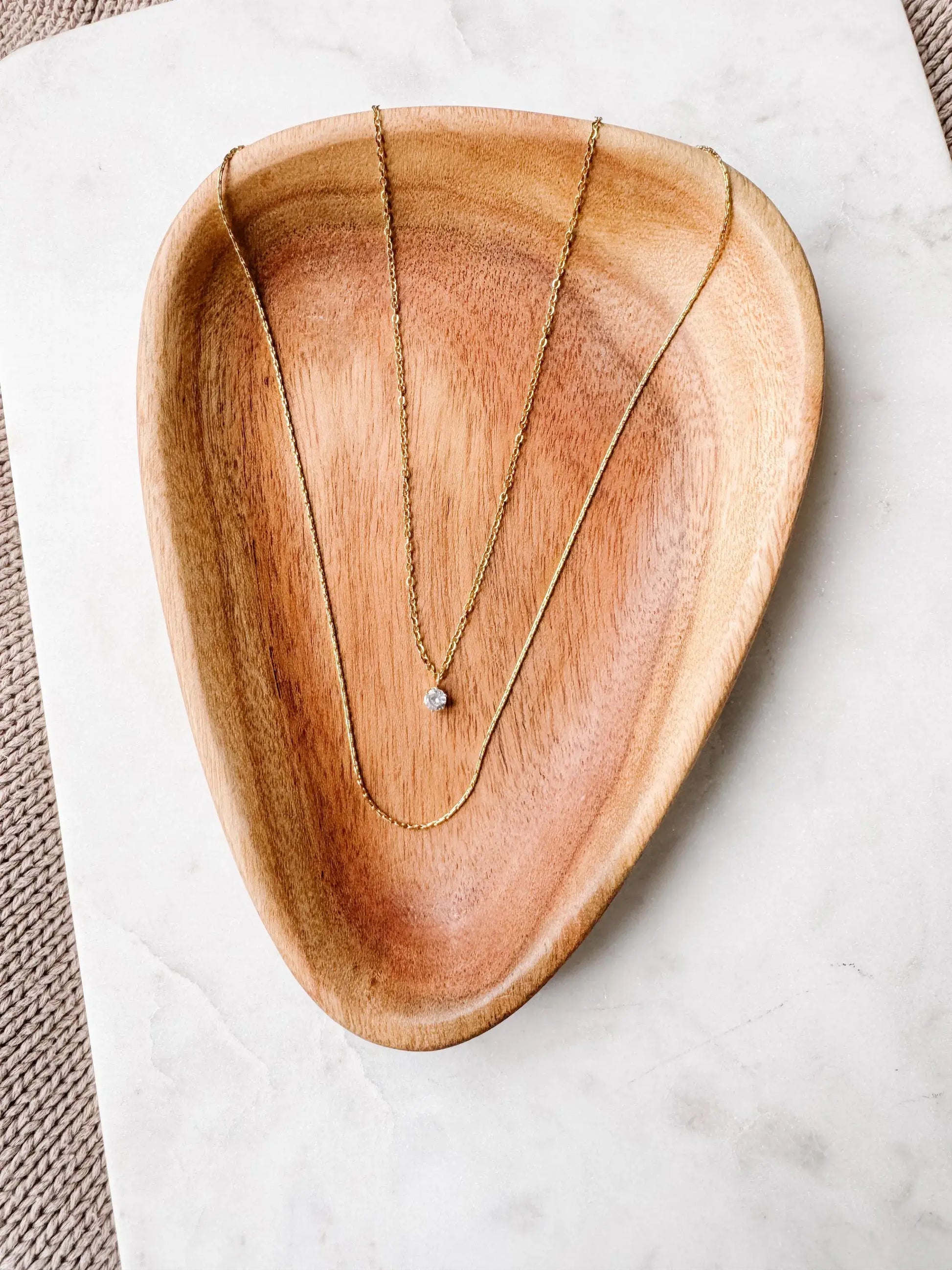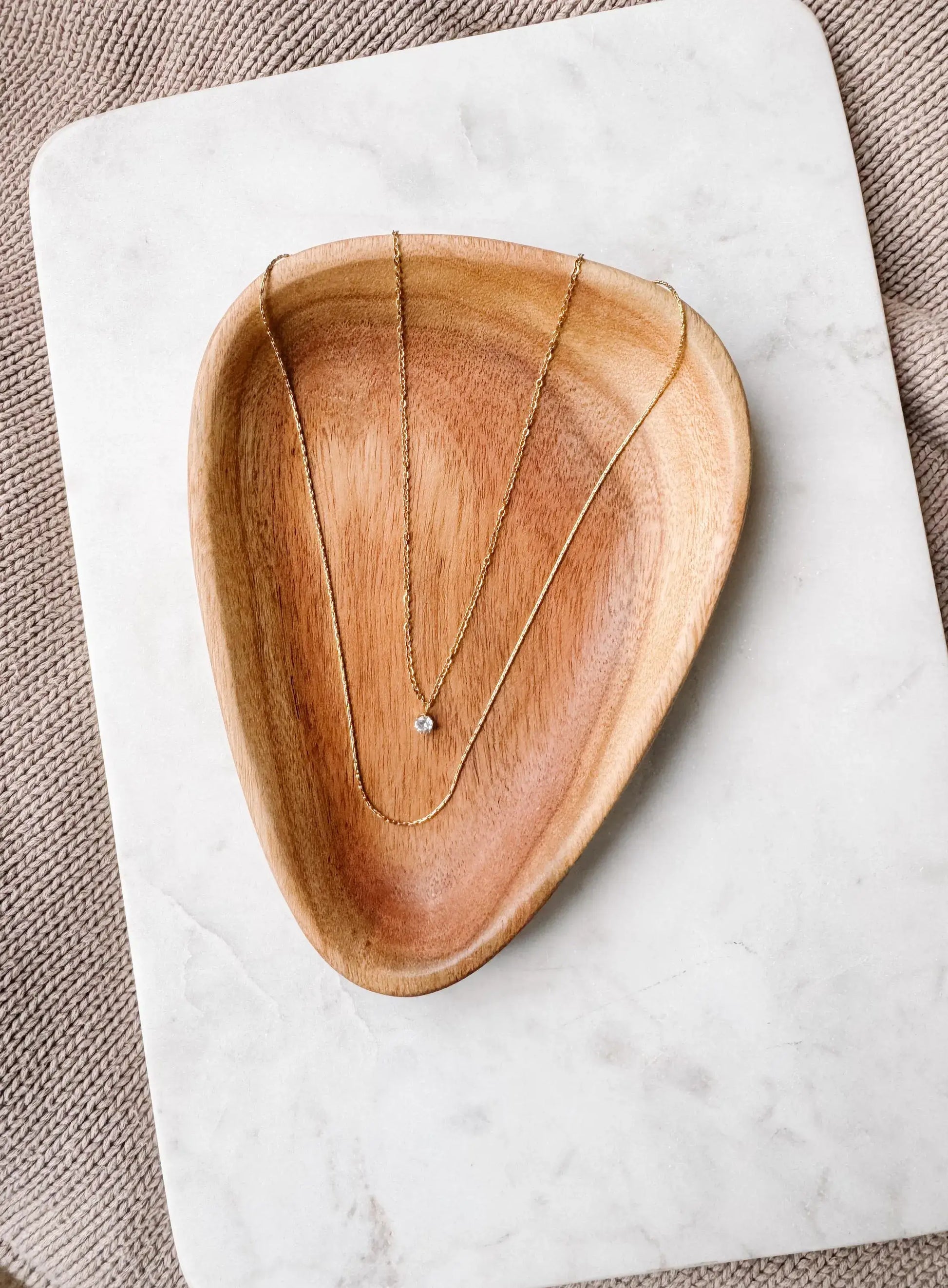 Waterproof and hypoallergenic 18K gold plated stainless steel necklace. This necklace features 2 dainty chains connected to 1 single closure.